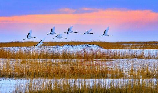 扎龍國家級自然保護區是中國最大、世界聞名的扎龍濕地,位于黑龍江省齊齊哈爾市東南30千米處。總面積21萬公頃,為亞洲第一、世界第四,也是世界最大的蘆葦濕地,是中國首個國家級自然保護區,被列入中國首批“世界重要濕地名錄”。扎龍景區是國家AAAA級旅游景區,景區內湖澤密布,葦草叢生,是水禽等鳥類棲息繁衍的天然樂園。世界上現有鶴類15種,中國有9種,扎龍有6種;全世界丹頂鶴不足2000只,扎龍就有400多只。扎龍國家級自然保護區,屬濕地生態系統類型的自然保護區。保護區由烏裕爾河下游流域一大片永久性季節性淡水沼澤地和無數小型淺水湖泊組成,濕地的周圍是草地、農田和人工魚塘,主要保護對象為丹頂鶴等珍禽及濕地生態系統,是中國北方同緯度地區中保留最完整、最原始、最開闊的濕地生態系統。