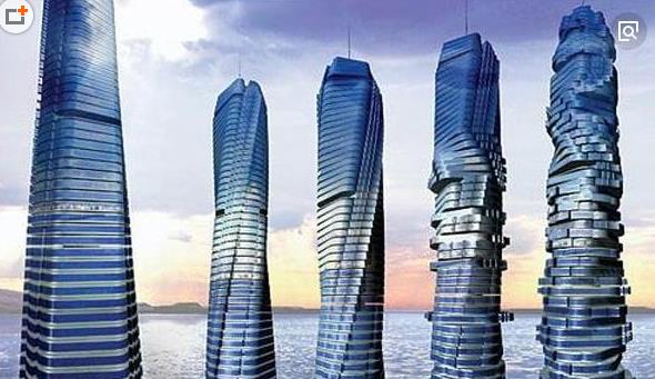 最初的設計方案是建造七大洲,但是迪拜人發(fā)現(xiàn)如此大塊的島嶼不會有人買得起,因此將七大洲方案改為由300個人工小島按照世界各大洲形狀組成的人工群島。讓一座摩天大樓在空中旋轉(zhuǎn)“跳舞”,聽上去像是科幻小說?傻习菥徒ㄔO了這樣一個建筑,它是世界首個風力發(fā)電的旋轉(zhuǎn)摩天大樓。