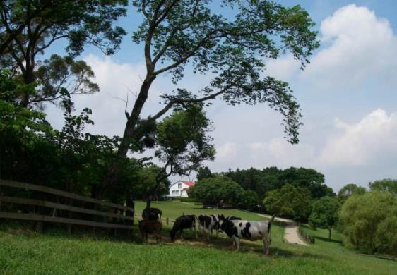 以牧場風(fēng)光馳名的中部青年酪農(nóng)村飛牛牧場,地處通霄鎮(zhèn)南和里的山坡地,綿延青翠的大草原,成群的牛羊,宛如紐澳牧野的翻版,為臺灣西部首屈一指的休閑牧場。如今,在休閑農(nóng)業(yè)的風(fēng)潮下,牧場除了畜牧的本業(yè)外,也轉(zhuǎn)型成農(nóng)村體驗(yàn)、生態(tài)保育、自然休閑的渡假樂土。飛牛牧場占地45公頃,空間系采美式牧場規(guī)劃,一眼放去,牧草原遼闊無際,一派自然豪邁的恬適風(fēng)情;蜿蜒的木圍籬、黑白相間的牛悠緩踱步,氛圍悠閑清新;空氣中的青草香,令人為之神清氣爽。