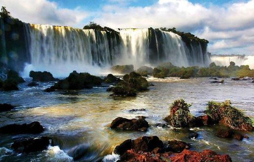 伊瓜蘇大瀑布是世界上最寬的瀑布,為馬蹄形瀑布,高82米,寬4千米,平均落差75米。1984年,被聯合國教科文組織列為世界自然遺產。它發源于巴西伊瓜蘇大瀑布 南部巴拉那州東部大西洋沿岸 山區,依地勢自東向西流至巴西、阿根廷、巴拉圭三國交界處與巴拉那河匯合,然后向西南,再向東南在烏拉圭境內注入大西洋。伊瓜蘇大瀑布在伊瓜蘇河上,沿途集納了大小河流30條之多,到了大瀑布前方,已是一條大江河了。