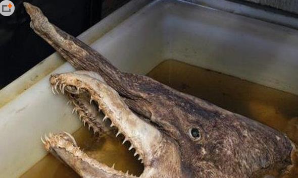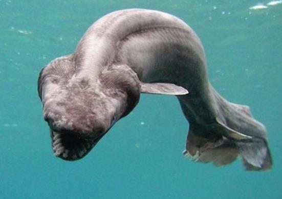 皺鰓鯊看起來更像是巨大的鰻魚或深海蜥蜴。這種罕見的鯊魚物種最常見的棲息地是日本海域。除了怪異的體型,皺鰓鯊的另一著名特征是懷孕期長達42個月(脊椎動物中最長的孕期)。皺鰓鯊的口中長有300顆鋒利的牙齒,而且嘴還能擴張,使得它能吞下自己身體一半體積大小的獵物。