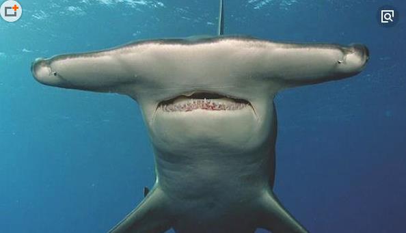 雙髻鯊又叫錘頭鯊,它最大特征就是酷似錘子的頭部。它們的雙眼長在“錘頭”兩端,具有360度的垂直視覺,這意味著它們可以同時看到上下兩方的情況。雙髻鯊對獵物發出的電場具有高度的敏感性。盡管它們長有較小的嘴和牙齒,但它們相對更為靈活,能夠在水里高速旋轉游動。