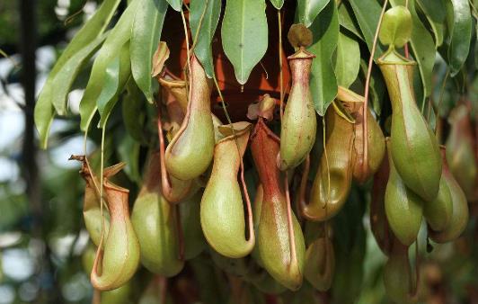 豬籠草是豬籠草屬全體物種的總稱(chēng)。屬于熱帶食蟲(chóng)植物,原產(chǎn)地主要為舊大陸熱帶地區(qū)。其擁有一個(gè)獨(dú)特的吸取營(yíng)養(yǎng)的器官——捕蟲(chóng)籠,捕蟲(chóng)籠呈圓筒形,下半部稍膨大,籠口上具有蓋子,因其形狀像豬籠而得名。關(guān)于豬籠草有個(gè)傳說(shuō),據(jù)說(shuō)每個(gè)國(guó)家的人都不會(huì)去摘這種植物,因?yàn)橐坏┤藗儾烧怂麄兙蜁?huì)開(kāi)始下雨了,而且這件事情有法國(guó)人驗(yàn)證了的。豬籠草?紅色和黃色的但是普遍黃色的多一些,很多年才會(huì)開(kāi)一次花,花氣味很臭,開(kāi)花會(huì)分泌一種花蜜,引誘其它獵物去靠近成為死亡之地,因?yàn)樗麜?huì)腐爛那些獵物的尸體,從而獲取營(yíng)養(yǎng)。