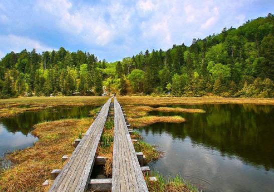 尾瀨國立公園是一座橫跨日本福島縣、栃木縣、群馬縣、新潟縣的國立公園,公園以日本規(guī)模最大的山岳濕原地帶—尾瀨以及會(huì)津駒岳、田代山、帝釋山等周邊區(qū)域?yàn)橛^景點(diǎn),肩負(fù)著保護(hù)自然生態(tài)環(huán)境和觀光游覽的雙重使命。尾瀨是由燧岳的熔巖被只見川截住后所形成的,位于海拔1400米到1700米的地區(qū),是日本規(guī)模最大的高層濕原地帶。在尾瀨散布的大約400多個(gè)淺池沼中,可以看到以稀有的濕地植物觀音蓮、日光黃菅(一種黃色的百合花)為代表的濕原性植物叢和泥炭層上浮形成的浮島等濕地景觀。