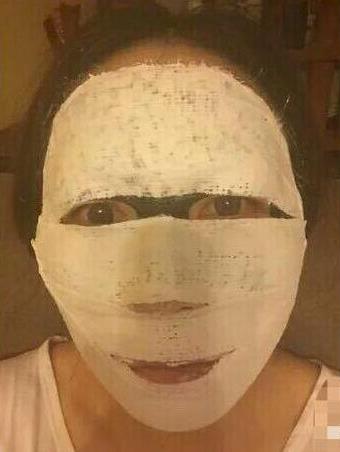 這是買家上傳的面膜照片,小編覺得就像纏了一圈繃帶,面膜給人一種布料的感覺,最有趣的是,這位買家還挺滿意的,表示下次再來,你們喜歡這種面膜嗎?