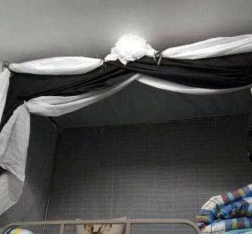這個(gè)蚊帳也是沒誰(shuí)了,想必裝上后嚇壞了很多人吧,很想知道這位同學(xué)是誰(shuí),真的是人才啊,網(wǎng)友吐槽:旁邊再有兩個(gè)花圈,一切就完美了。看上去就像祭祀現(xiàn)場(chǎng),這位同學(xué)心真大。