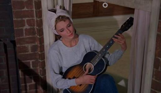 這首《月亮河》是電影Breakfast at Tiffany's中的插曲,于1961年獲第34屆奧斯卡最佳電影歌曲獎。這部電影描寫一位農村姑娘在紐約的生活經歷。幾乎所有的歌手都唱過這首歌《月亮河》(Moon River),但在《蒂凡尼早餐》(Break at tiffany’s)中奧黛麗·赫本的演繹卻是獨一無二的。影片里赫本穿著一條當時最流行的七分褲,頭發上包著頭巾,一個人坐在露臺上自彈自唱,顫抖而微微沙啞的聲線讓樓上的青年作家魂飛天外。一曲歌了,她抬頭一笑,眼睛安詳地眨一眨:“HI1我們幾乎可以聽到作家的心被小箭頭射中的聲音。