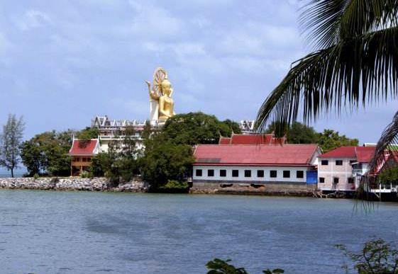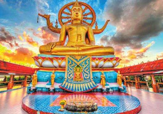 介紹位于大佛海灘邊的小島上,是蘇梅島上出名的景點。寺廟內有一尊高12米的金色大佛像,雄偉壯觀。寺廟的周邊是一個集市,售賣一些貝殼類的手工藝品。
