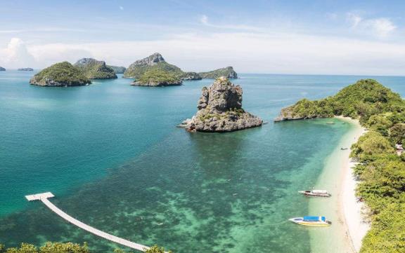 安通群島國家海洋公園坐落于素叻府的泰國灣,成立于1980年,由42個小島組成,面積為102平方公里,僅有12平方公里的陸地面積,是一個旖旎多姿,豐富多彩的海洋公園,深受歡迎。海洋公園內有迷人的小島、銀白的海灘、清澈的海水、藍藍的天空、蔥郁的森林、嶙峋的山崖峭壁、隱蔽的礁湖和種類繁多的野生動物,它們共同組成了公園最美麗、最宜人的自然景觀。走進海洋公園,就像是走進了一個充滿熱帶風情的人間天堂,這里不僅寧靜安逸,更加舒適宜人,讓每個來此的游客都可深切體會到海洋的廣闊、沙灘的無垠和小島的迷人。