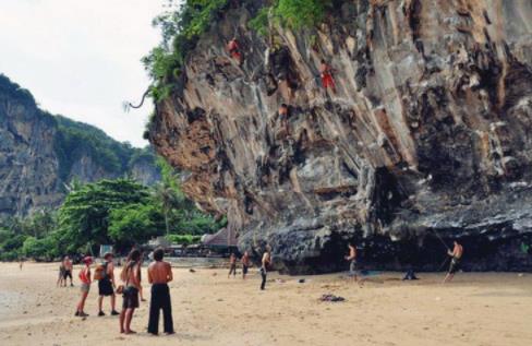 萊雷海灘位于泰國甲米市和奧南市之間,是一個很小的半島。因為海灘與大陸的入口被石灰巖峭壁阻斷,只有乘坐小船才能到達。萊雷海灘有最好的浮潛地點、最好的觀景點,還有世界級的攀巖場地。萊雷海灘的石灰巖峭壁是愛好攀巖的人的絕佳去處,而且海灘風景秀麗、相對疏松的環境氣氛也越來越受到游客的青睞。萊雷海灘分為帕囊、東萊雷、西萊雷和通賽四個景點:帕囊海灘面積不大,在一處巖壁下方有一座鐘乳石洞穴,洞里面供有一座女神像據說能保佑船家平安歸來;東萊雷是淤泥灘,沒有沙灘,但被片片紅樹林覆蓋,風光旖旎。