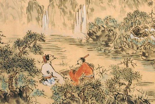 “高山流水”典故最早見于《列子·湯問》。在人們的用典實踐中,這一典故逐漸發展出七十余個典形和樂曲高妙、相知可貴、知音難覓、痛失知音、閑適情趣等典義,還存在典故反用現象。傳說先秦的琴師伯牙一次在荒山野地彈琴,樵夫鐘子期竟能領會這是 描繪“峨峨兮若泰山”和“洋洋兮若江河”。伯牙驚道:“善哉,子之心而與吾心同。”鐘子期死后,伯牙痛失知音,摔琴絕弦,終生不彈,故有高山流水之曲。