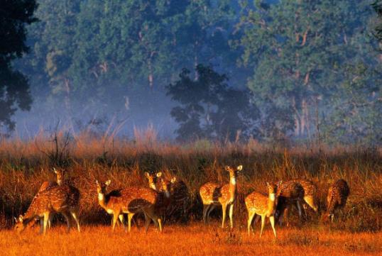 坎哈國家公園坐落于印度的中央邦,成立于1955年,占地940平方千米,既是一個國家公園,也是一個老虎保護區,為野生動物的天然庇護場所,讓這些動物在天然的環境中生活,不再遭受人類的-。坎哈國家公園由叢生的竹林、一望無際的草地和潺潺的溪流組成,是1000多種植物的家園,為野生動物的生存和繁殖提供了絕佳條件。園內最常見的動物有皇家孟加拉虎、豹、印度懶熊、野貓、麂、梅花鹿、沼鹿、豺等,共同生活在神秘而充滿野性的土地上。在眾多的鹿種類中,公園內的澤鹿和沼鹿為公園的驕傲,因為這是印度唯一的此品種。