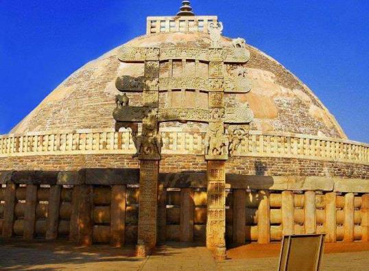 桑吉佛教古跡距離博帕爾約40公里,坐落在小山上,俯瞰著平原。古跡由一組佛教建筑群構成,包括巨石石柱、宮殿、廟宇和寺院,這些建筑的歷史大多可追溯到公元前2世紀至公元前1世紀,它們都不同程度地保存了下來。在12世紀前這里一直是印度佛教的教理中心,目前它是現存最古老的佛教圣地。1989年根據世界文化遺產遴選標準將桑吉佛教古跡列入了《世界遺產目錄》。相傳公元前三世紀,阿育王共建有8.4萬座佛塔,其中8座建在桑奇,現存三座,其中最著名的是桑吉佛塔一號遺址(又稱桑吉大塔)。