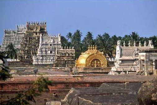斯里蘭格那塔斯瓦米寺位于印度南部著名城市蒂魯吉拉伯利市斯里蘭格(Srirangam)區,其大部分建筑建于十四世紀到十七世紀之間,占地面積631000平方米,是印度最大的寺廟,也是世界上最大的宗教建筑群之一。斯里蘭格那塔斯瓦米寺整體采用德拉威式(Dravidian)建筑風格,稍微有點傾斜;廟外圍繞著七層同心圓圍墻,周長可達4116米,據說是印度規模最大的寺廟架構;同心圓墻上“鑲嵌”著許多雕刻精致、神態各異的神像,十分壯觀。