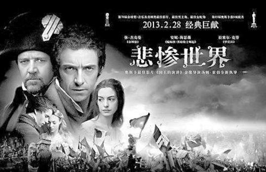 《悲慘世界》是在紀念法國著名作家雨果誕辰210周年暨《悲慘世界》出版150周年之際,由湯姆·霍伯執(zhí)導的一部電影,由休·杰克曼、羅素·克勞、安妮·海瑟薇、阿曼達·塞弗里德等主演。該片的前身是同名音樂劇,根據(jù)法國大文豪維克多·雨果1862年發(fā)表的同名長篇小說改編。2013年2月28日,電影《悲慘世界》在中國內(nèi)地公映。影片故事發(fā)生在19世紀的法國,窮苦農(nóng)民冉阿讓(休·杰克曼飾)因偷面包而入獄多年,終獲假釋卻再次無視法律,不得不開始逃亡。被收留他的主教感化后,冉阿讓決心洗心革面,開始新生活。