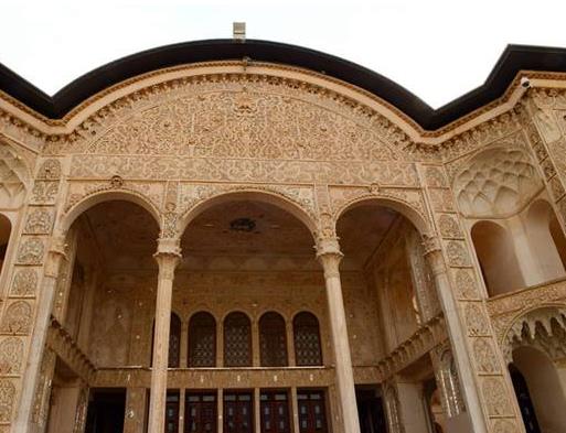 布魯杰爾迪古宅位于卡尚的蘇爾塔.阿米爾.阿赫默德區(qū)的阿拉維大街上。建成于1876年,建造過程花費(fèi)了18年時間。古宅的主人為哈基.賽義德.賈法爾.布魯杰爾迪,是一個貨物批發(fā)商。目前卡尚文化遺產(chǎn)管理部門設(shè)于此。從阿拉維大街就可看到布魯杰爾迪古宅磚紅色古樸而漂亮的大門,門右側(cè)的泥土墻上掛著一波斯文書法彩寫的橫幅,很搶眼,但不知所云,就當(dāng)是熱烈歡迎我們吧!