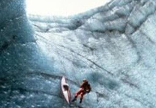 冒險家米克·科伊納和他的皮劃艇沿著冰島第二長河——喬庫爾薩河上游一個陷坑的坑壁下降。喬庫爾薩河的河水來自一條冰川的融水,這個深150英尺(約合45米)的倒扣漏斗形陷坑由下方地熱噴口噴出的上升蒸汽所致。