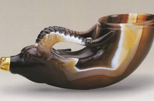 鑲金獸首瑪瑙杯是唐朝時期的酒器,這件文物于1970年在西安市南郊何家村出土,目前被收藏在陜西歷史博物館。這件文物是唐代時期做工精湛的一件玉器,選用紅色瑪瑙琢制,杯體為角狀獸首形看起來十分精美。