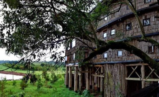 樹頂酒店坐落于肯尼亞中部省的阿伯德爾國家公園中,始建于1932年,為世界最早的樹屋酒店,最初為狩獵者所建,可容納一百多人,觀景大窗和三樓觀景臺供游客們觀賞來覓食的大象野牛。樹頂酒店為肯尼亞最具名氣的酒店之一,關(guān)于這個酒店,還有一種說法,那就是“上山公主,下山女王”,1952年,當(dāng)時還是英國公主的伊麗莎白來這里觀賞野生動物。當(dāng)晚她下榻在樹頂酒店。夜里,接到了她父親英王喬治六世駕崩的噩耗,隨即英王室立即宣布她繼位為女王,第二天早上下山回英國繼位了。