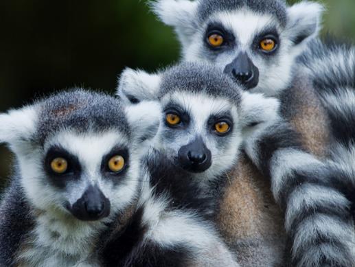 馬達加斯加·狐猴被稱為天生的舞蹈家,輕盈的步伐可愛的臉龐可以瞬間把你萌到。狐猴怕冷喜歡曬太陽,有著標志性的大尾巴就好像黑白條紋的旗子。
