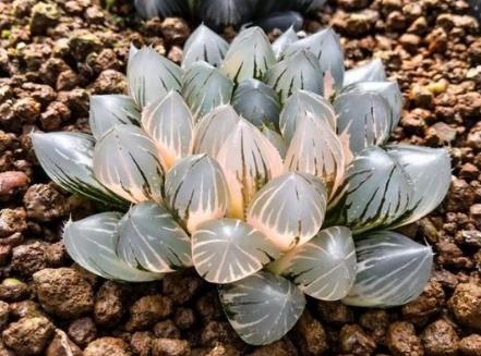 白肌楞葉這款多肉整個只有黑白兩色,看起來給人的感覺不得不說有一種換舊般的金屬感,而且它葉子上的豹紋斑更讓它顯得獨一無二,在價格上別看它單片只需要幾十快,但如果是品相好的一顆至少是需要花費20萬元左右!