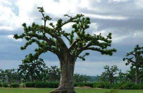 猴面包樹(shù)又叫波巴布樹(shù)、猢猻木或酸瓠樹(shù),是木棉科大型落葉喬木,主干短,分枝多。猴面包樹(shù)樹(shù)冠巨大,樹(shù)杈千奇百怪,酷似樹(shù)根,樹(shù)形壯觀,果實(shí)巨大如足球,甘甜汁多,是猴子、猩猩、大象等動(dòng)物最喜歡的食物。當(dāng)它果實(shí)成熟時(shí),猴子就成群結(jié)隊(duì)而來(lái),爬上樹(shù)去摘果子吃,“猴面包樹(shù)”的稱(chēng)呼由此而來(lái)。