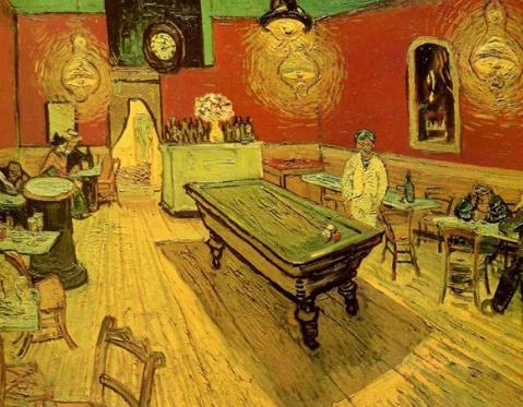該畫(huà)是梵高星光三部曲的第一部,畫(huà)面描繪了阿爾勒一家咖啡館的室外景色,室內(nèi)溫暖而明亮的黃色燈光灑在屋外鵝卵石鋪成的廣場(chǎng)上,在深藍(lán)色的夜空中,群星閃爍,宛如朵朵燦爛的燈花。整幅畫(huà)面與畫(huà)家筆下的咖啡館室內(nèi)景形成了鮮明的對(duì)比,色彩明麗,氣氛溫馨恬適。