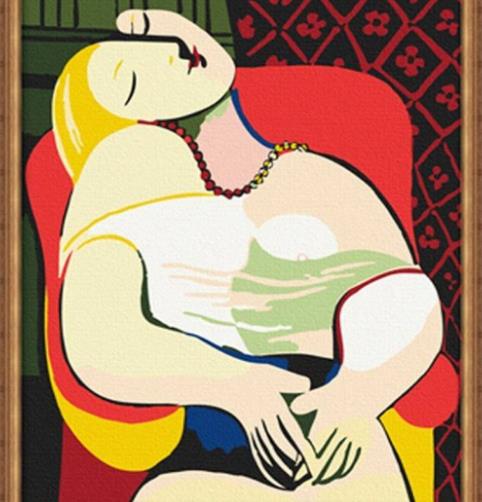 這部作品是畢加索1932年創作的一幅油畫。畫中的人物是一個體態豐美的17歲少女頭發的金色的,這個少女是畢加索繪畫的時候的模特,這幅畫運用了獨特的表現手法給觀者更多的想象的空間。