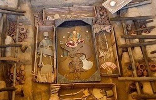 西潘王墓室位于秘魯北部奇科拉約附近,由盜墓者最先發(fā)現(xiàn),考古學(xué)家阿爾瓦由國際文物黑市的文物得到線索并找到了這一墓室,使其得到保護(hù)。西潘王墓室的發(fā)現(xiàn)是整個西半球最輝煌的墓葬文物發(fā)現(xiàn),被喻為新大陸的“圖特卡蒙墓”。潘王是古代莫切人的一位帝王。莫切人生活在公元100年到700年之間,后來被印加人征服。一直以來印加文明是秘魯古代文明的中心,很難想像在莫切人的古跡中卻發(fā)現(xiàn)了令印加文物都黯然失色的寶貝。
