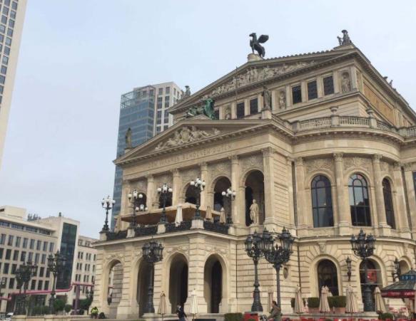 法蘭克福老歌劇院是法蘭克福最著名的建筑之一,法國巴黎歌劇院的復制品,1880年建成,開演當年威廉一世皇帝觀看了首場演出之后,大為感動,宣布說唯有法蘭克福能繼承如此金碧輝煌。1945年戰爭以后它完全成為廢墟,七十年代末的修繕共花費了兩億四千萬馬克,新建采用新古典主義式,1981年8月28日舉行了老歌劇院落成典禮。如今同時作為音樂廳和會議中心使用,是一流的文化場所。重建的老歌劇院重新開放后每年上演近300場音樂會,吸引了大量的觀眾。在能容納2450名觀眾的大廳里每年有來自國內外的團體和個人演出。