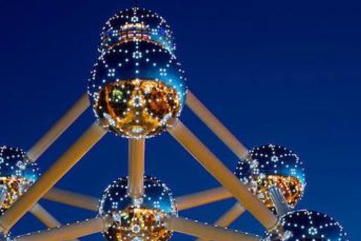 原子球塔位于比利時首都布魯塞爾西北郊的海塞爾高地,是布魯塞爾十大名勝之一,有比利時的艾菲爾鐵塔之美稱。原子球塔是為1958年布魯塞爾世界博覽會而建的金屬結構的紀念性建筑物,AndréWaterkeyn設計,高102米,重達2200噸,包括9個直徑18米的球體,與連接圓球的鋼管構成相當于放大1650億倍的α鐵的正方體晶體結構。這是一座造型獨特、氣勢宏偉、令人嘆為觀止的龐大建筑物。從地面到頂端最高的圓球之間設有快速直達電梯,而在其他各個圓球內都裝有自動電扶梯,人們在每個圓球之間都可以自由往來。