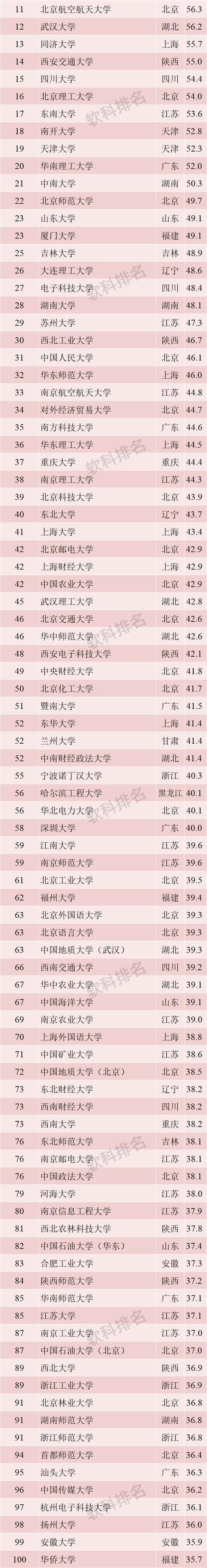 我們打開榜單發現,排名靠前的仍然是傳統的985大學和雙一流高校,根據軟科統計信息顯示,排名前50的大學里,有49所來自“雙一流”,前100名中,有87所全部是“雙一流”,可見雙一流大學仍然是主流。
