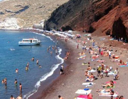 除了夏威夷的紅海灘外,在希臘的圣托里尼也同樣有一處紅色的沙灘,已經(jīng)成為圣托里尼的知名旅游景點(diǎn)。紅海灘坐落于圣托里尼西南部的阿科羅提利小鎮(zhèn)(Akrotiri),正是由于其紅色的色彩而使其成為一個(gè)游人如織的沙灘。圣托里尼紅沙灘為圣托里尼最美麗的沙灘之一,形成于沙灘身后深紅色的巖石,而深紅色的巖石是黑色的火山石里面的磁鐵礦,經(jīng)過(guò)漫長(zhǎng)的歲月氧化而呈現(xiàn)出紅色形成的。紅色的火山巖在結(jié)構(gòu)上類(lèi)似浮石,質(zhì)地較輕,所以它的碎屑也只有在海浪比較輕柔的地方才能沉積下來(lái)。