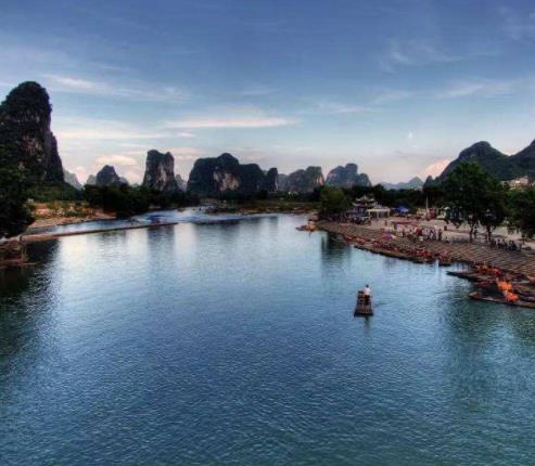 當中國人想要賞玩國家最美的山水風光時,他們就會前往陽朔暢享竹筏漂流。陽朔,中國南部一個濱水小鎮(zhèn),以其眾多的卡斯特丘陵和傳統(tǒng)漁村的生活方式廣為人知。在市中心的旅游區(qū),游客可以租一輛自行車,去恣意追尋那讓人心情舒緩的風景:竹筏沿著河流緩緩飄過,漁民輕輕放出捕魚的鸕鶿,而農(nóng)民則在田野間辛勤勞作,田野坐落在高聳的郁郁蔥蔥的山巒里。