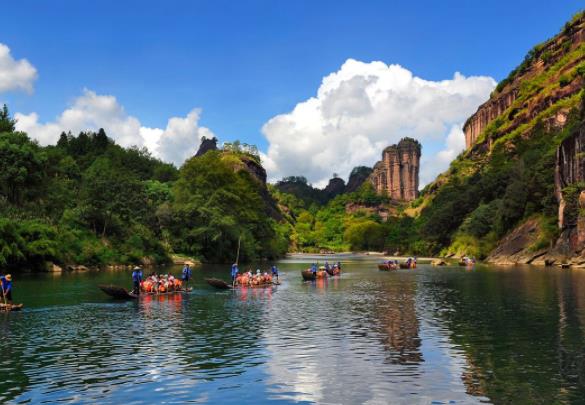 作為中國東南地區(qū)的主要標志和聯(lián)合國教科文組織世界文化遺產(chǎn)名錄之一,武夷山以其身為程朱理學(xué)的起源與發(fā)展地備受推崇。11世紀以來,程朱理學(xué)在東亞一直影響深遠。九曲河低谷的竹筏漂流很受游客歡迎,歷時2小時,行程8千米的旅行讓你一覽壯麗的武夷美景。要欣賞武夷平緩的山峰,澄澈的河水,漂流絕對是最佳選擇。