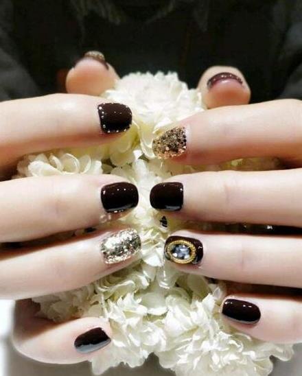 采用用深“咖啡色”來作為主色調,并且在指甲上用“水晶”、“鉆石”等裝飾品來裝飾,其貴婦的形象是一覽無余,對于小女孩子來說,這種美甲可能并不適合,但對于“御姐”絕對能提升你的氣場!