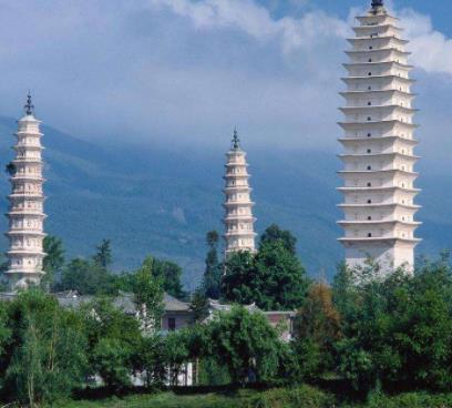 大理三塔的主塔是在9世紀中葉首次建立的,當時是為了緩解周期性的水患。塔高69米,共有16層,在唐朝算得上是“摩天大廈”了,即使現在它也是中國最高的寶塔。塔的每一層都飾有栩栩如生的佛像。另兩座塔高42米,建立時間比主塔晚約100多年。