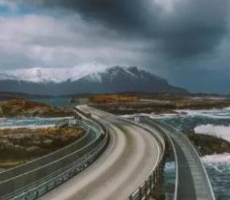 地點(diǎn):挪威大西洋公路,是挪威64號(hào)縣公路的一段,全長(zhǎng)5英里,充滿西部海灣的獨(dú)特魅力。公路開通于1989年,從西面2英里處開始,七座橋梁呈之字形向西延伸,連接挪威海上散落的小島,一直到達(dá)Vevang。七座橋中,位于Vevang東邊2英里的通天橋最是有名。它也被叫做“通往未知之地的橋梁”。大橋迂回曲折,令人心生錯(cuò)覺,每當(dāng)遠(yuǎn)望,都好似自己正在下陡坡。但是不用擔(dān)心,大橋暢通,絕不會(huì)將你引向冰冷的河水。大西洋公路不僅有其匠心獨(dú)運(yùn)的工程設(shè)計(jì),還號(hào)稱其風(fēng)景絕對(duì)令人嘆為觀止。夏季來此的游客也許能看到海豹和海鳥的身影,那些大膽的游客如果在秋季來此,將可能置身驚濤駭浪間。因此,我們只推薦老練的司機(jī)于秋季來此。