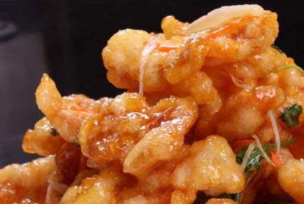 鍋包肉是東北的溜肉段衍生出來的一道菜,只不過現在是肉片,外面包著用土豆做的淀粉,放在油里炸,所以又叫“鍋爆肉”,外脆、酸甜,里面的肉嫩。