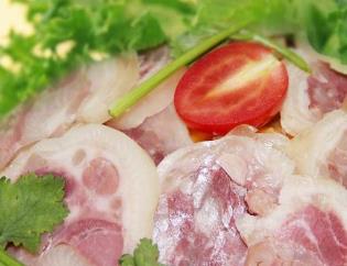 捆香蹄保留原豬蹄形狀,內(nèi)裹精肉及皮絲,用鹽、糖、味精、香料等放入雞湯中煮熟。外表完整,采用獨特的工藝、先進的嫩化技術(shù)和科學配方,精心研制而成,切片完整,皮香肉嫩,咸淡適中、風味獨特,含有豐富的膠原蛋白質(zhì),是區(qū)域間最有代表性的名特產(chǎn)。