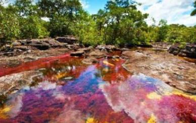 只需看一眼Caño Cristales河,就會明白它名字的由來。由于河底沙床中生長著一種罕見的植物Macarenia clavigera,每到秋天,河水會在生物作用下變成鮮艷的紅色。紅色的植物、棕色的沙子、綠樹的倒影、藍色的河水共同造就了這樣一條五彩斑斕的河流。彩虹河位于哥倫比亞Meta省的La Macarena附近,曾經是可卡因生產地,最近已經成為一個安全的旅游目的地。