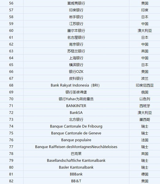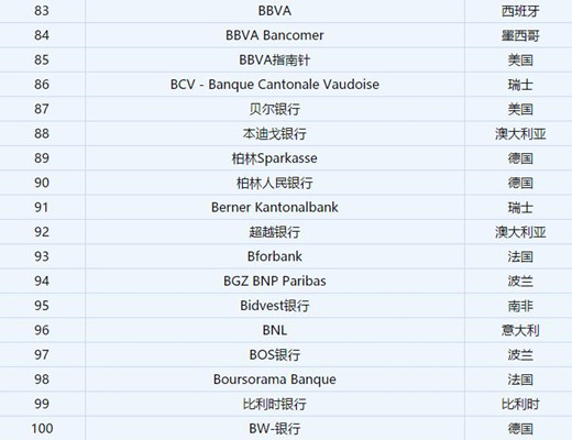 2019年福布斯世界最佳銀行排名,德國1822direkt服務最好