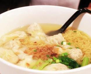 云吞面又稱餛飩面、細蓉、大蓉。是老廣記憶深處的傳統(tǒng)特色小吃之一,最早源于廣州,屬于粵菜系。一般以云吞拌面,分為湯面與撈面。云吞面是一種在中國十分普遍的食品。以煮熟的云吞和竹升面,加入大地魚、蝦皮、瑤柱、火腿熬成的湯底即成。