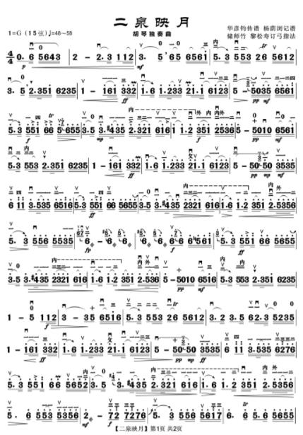 《二泉映月》,二胡名曲,是中國民間音樂家華彥鈞(阿炳)的代表作。作品于20世紀50年代初由音樂家楊蔭瀏先生根據阿炳的演奏,錄音記譜整理,灌制成唱片后很快風靡全國。這首樂曲自始至終流露的是一位飽嘗人間辛酸和痛苦的盲藝人的思緒情感,作品展示了獨特的民間演奏技巧與風格,以及無與倫比的深邃意境,顯示了中國二胡藝術的獨特魅力,它拓寬了二胡藝術的表現力,曾獲“20世紀華人音樂經典作品獎”。