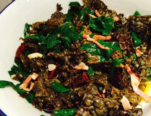 他家有一道菜是塊招牌,宮爆板筋。這道菜粘糯不塞牙,口感層次豐富。蒜香排骨做的老而不柴有嚼勁。值得注意的是他家的酸菜湯圓咸中帶甜。老少咸宜。