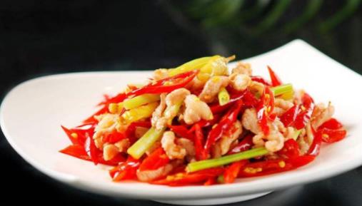 泡椒板筋是一道非常典型的黔菜,具有咸鮮、微辣的味型特點。泡椒板筋必須選用新鮮大豬通脊肉內筋(當地又稱背柳肉)為主料,在烹飪前進行腌制,配以酸、辣適中的泡椒作為輔料。在烹飪時講究現切、現腌、現炒這三大原則。色澤紅亮,酸辣爽口,滑脆鮮嫩。但炒出來的泡椒板筋的板筋光嫩是不行的,還要糯香。泡椒也必須是軟中帶脆,并且菜肴還是清質亮油,裝盤后有形、有色、有味,此為貴陽獨有選料方法烹制的特色菜肴。
