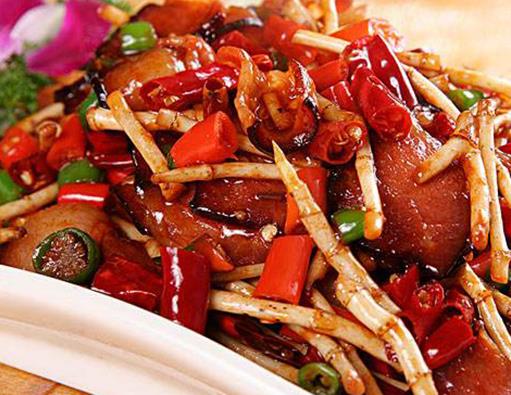 1、泡椒板筋,2、折耳根炒臘肉,3、辣子雞,4、糟辣脆皮魚,5、八寶甲魚,6、酸湯魚,7、紅油米豆腐,8、狀元蹄,9、雞絲手撕手指菜,10、雞蛋碰石頭。