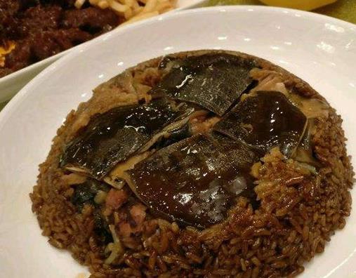 八寶飯蓋上甲魚一起蒸,這就是貴州的特色美食八寶甲魚。甲魚很軟爛,八寶味很濃郁,味道鮮美,有美容、排毒的功效。