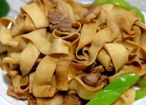 豆腐皮是中國傳統豆制品,是用豆類做的一種食品。在中國南方和北方地區有多種名菜。豆腐皮性平味甘,有清熱潤肺、止咳消痰、養胃、解毒、止汗等功效。豆腐皮營養豐富,蛋白質、氨基酸含量高,據現代科學測定,還有鐵、鈣、鉬等人體所必需的18種微量元素。