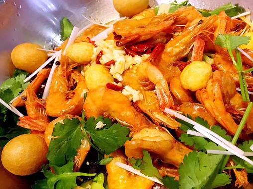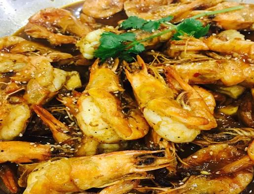 這個其實有點類似于干鍋,吃起來蝦特別干脆可口,就是可能稍微會有一點點干,所以需要搭配湯或者是飲料。